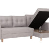 Pikowane siedzisko i poduchy wyróżniają Ingrid na tle pozostałych narożników. Model ten pokazuje, że nawet w małej przestrzeni można zorganizować piękne i funkcjonalne wnętrze. Dzięki swojej funkcjonalności ten mały narożnik świetnie nadaje się do pokoju dziennego lub mniejszego salonu. Prosta forma w skandynawskim stylu pasuje do każdego wnętrza. Posiada 2 pojemniki, które pomogą w utrzymaniu porządku.