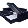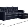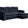 W tym narożniku o niewielkich wymiarach udało się połączyć elegancję i funkcjonalność. Charakterystycznym elementem są poduchy z podwójnym pikowaniem oraz ozdobną lamówką. Wygodny mebel został wyposażony w sprężyny typu bonell oraz piankę HR, których użyto jako wypełnienie siedziska. Dwa pojemniki na pościel pomieszczą wiele rzeczy. Ułatwiający rozkładanie mechanizm bez wysiłku pomoże stworzyć miejsce do spania.